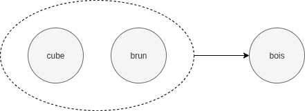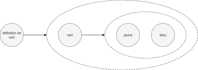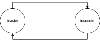 DiscussionUne autre façon de rendre explicite le renvoi bidirectionnel entre deux symboles consiste à recourir à un système de définitions circulaires. Dans l'exemple suivant, brasier renvoie à incendie, qui lui-même renvoie à brasier :