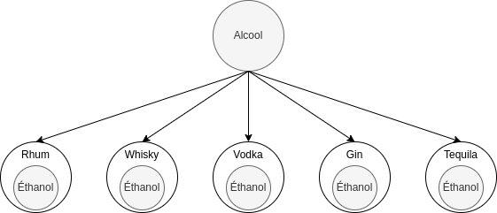 Cependant « soft-drink » et « alcool » représentent des notions abstraites. Il s'agit de termes génériques qui peuvent faire référence à différentes boissons. Voici une définition possible de la catégorie soft :
