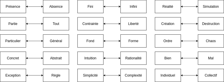 Enfin, cette œuvre me permet de réunir en un même endroit des idées intéressantes provenant de disciplines variées, nourries par mes lectures et mes réflexions personnelles, tissant des liens entre elles. Elle s'inscrit ainsi dans une démarche philosophique plus large, poursuivant plusieurs objectifs : clarifier le langage et la pensée (épistémologie), intégrer différentes disciplines, et soulever des points liés à l'esthétique et même à l'éthique.